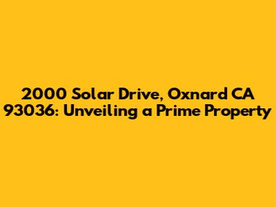 Hey there, real estate enthusiasts! Let's dive into the details of 2000 Solar Drive, Oxnard, CA 93036. This address isn't just a string of numbers and letters; it's a gateway to understanding a property's potential. We're going to break down everything you need to know, from the location's significance to what it offers in terms of lifestyle and investment. Ready to explore? Great, let's get started!