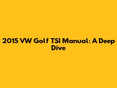 2015 VW Golf TSI Manual: A Deep Dive