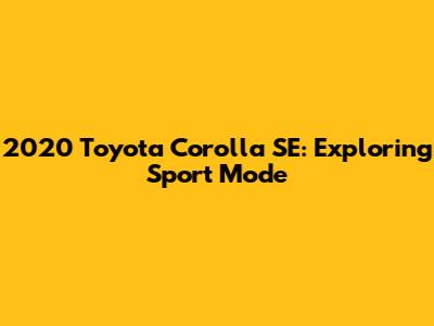 Hey guys! Let's dive into the sport mode of the 2020 Toyota Corolla SE. If you're wondering what this feature does and how it can enhance your driving experience, you're in the right place. We’ll explore everything about the 2020 Toyota Corolla SE sport mode, from its basic functions to its practical applications. Understanding the nuances of this feature will help you harness the full potential of your Corolla and make every drive more enjoyable.
