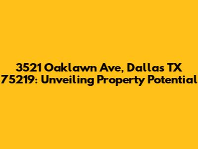 Hey there, real estate enthusiasts! Let's dive deep into a specific property: 3521 Oaklawn Ave, Dallas TX 75219. This isn't just a random address; it's a gateway to understanding Dallas's vibrant real estate landscape. We're going to explore what makes this property tick, from its location and surrounding neighborhood to potential investment opportunities and market trends. Buckle up, because we're about to embark on a journey that will equip you with valuable insights into this particular piece of Dallas real estate.