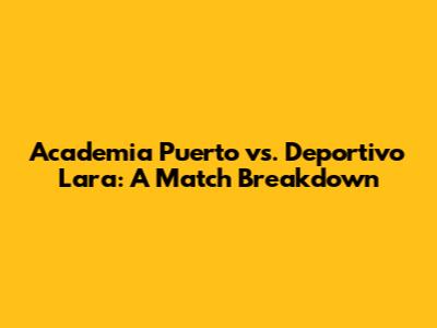 Hey guys! Let's dive deep into an exciting matchup: Academia Puerto facing off against Deportivo Lara. This analysis will cover everything you need to know, from team stats and player performances to predictions and what to watch out for. Whether you're a seasoned bettor or a casual fan, this breakdown is designed to give you a solid understanding of what to expect. Get ready for some serious soccer talk! We'll explore their histories, recent performances, key players, and even some strategic insights that might give one team the edge. So, grab your snacks, get comfortable, and let's break down this match, shall we?