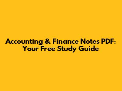 Accounting & Finance Notes PDF: Your Free Study Guide