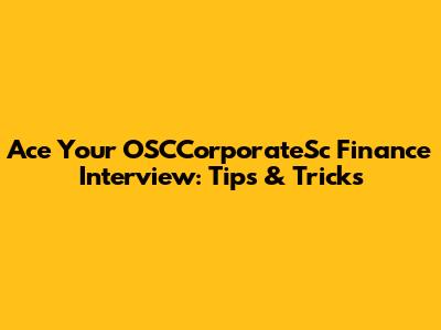 Ace Your OSCCorporateSc Finance Interview: Tips & Tricks