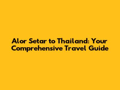 Hey guys! Planning a trip from Alor Setar to Thailand? Awesome choice! Whether you're dreaming of Bangkok's bustling markets, Phuket's stunning beaches, or Chiang Mai's serene temples, crossing the border from Malaysia to Thailand can be an exciting adventure. But before you pack your bags, let's get down to the nitty-gritty: distance, travel options, and everything else you need to know for a smooth journey.