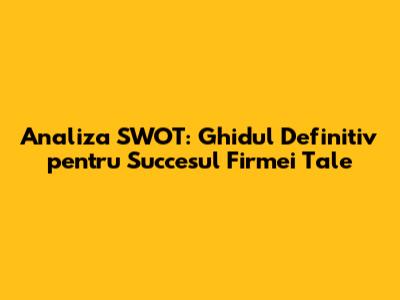 Bună, prieteni! Vă salut cu entuziasm! Astăzi, vom explora împreună o unealtă extrem de puternică și versatilă pentru orice firmă - analiza SWOT. Dacă ești genul de persoană care se întreabă cum să-și evalueze afacerea, să-și identifice punctele forte și slabe, oportunitățile și amenințările, atunci ai ajuns unde trebuie. Acest articol este referatul tău complet, un ghid detaliat care te va ajuta să înțelegi, să aplici și să profiți la maximum de analiza SWOT. Haideți să ne scufundăm în lumea fascinantă a planificării strategice și a succesului în afaceri!