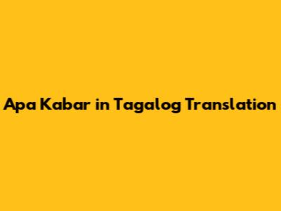 The Tagalog Translation of "Apa Kabar"