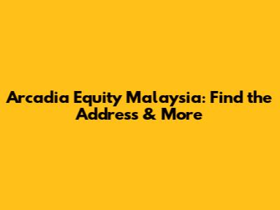 Arcadia Equity Malaysia: Find The Address & More
