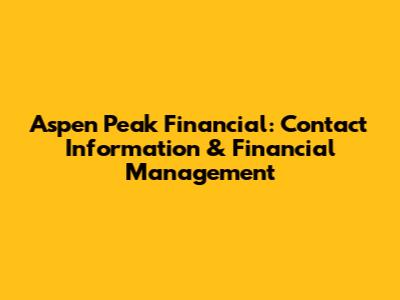 Hey there, financial enthusiasts! Let's dive into everything you need to know about Aspen Peak Financial. We're talking about getting in touch, understanding their services, and how you can take control of your financial journey. Finding the right financial partner can feel like navigating a maze, but don't worry, we're here to be your guide. Let's break down how to connect with Aspen Peak Financial and what makes them tick. Whether you're a seasoned investor or just starting to dip your toes into the world of finance, this is for you. We'll explore the various ways you can reach out, what services they offer, and how to make the most of your interactions with them. Get ready to empower yourself with knowledge and make informed decisions about your financial future! So, grab your favorite beverage, get comfy, and let's get started on this exciting exploration of Aspen Peak Financial.