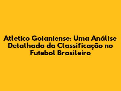 Atletico Goianiense: Uma Análise Detalhada Da Classificação No Futebol Brasileiro