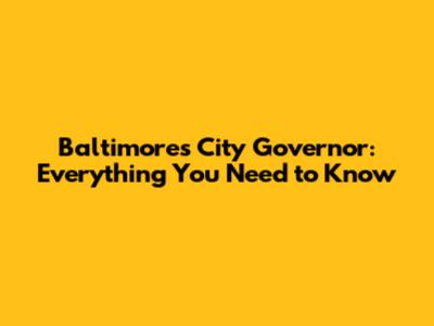 Baltimore's City Governor: Everything You Need To Know