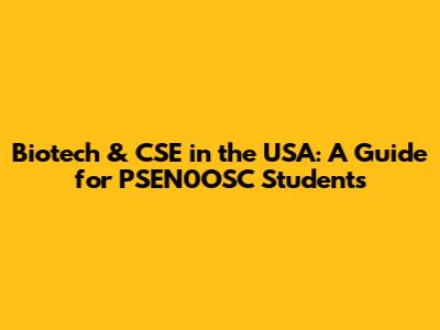 Biotech & CSE In The USA: A Guide For PSEN0OSC Students