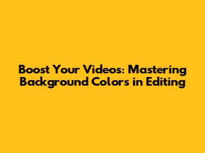 Boost Your Videos: Mastering Background Colors In Editing