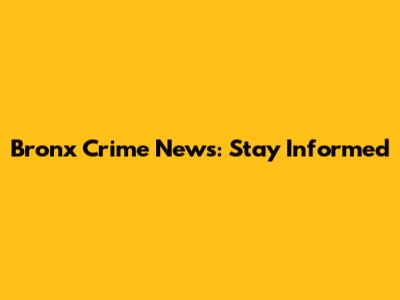 Bronx Crime News: Stay Informed