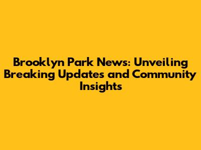 Brooklyn Park News: Unveiling Breaking Updates And Community Insights
