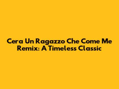 C'era Un Ragazzo Che Come Me Remix: A Timeless Classic