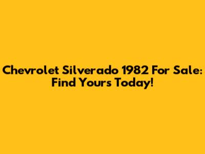 Chevrolet Silverado 1982 For Sale: Find Yours Today!