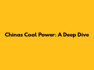 China's Coal Power: A Deep Dive