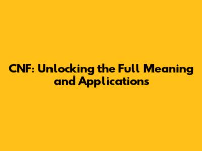 CNF: Unlocking The Full Meaning And Applications