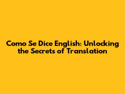 Como Se Dice English: Unlocking the Secrets of Translation
