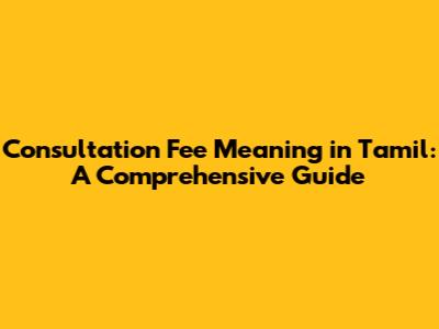 Consultation Fee Meaning In Tamil: A Comprehensive Guide
