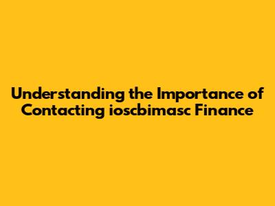 Understanding the Importance of Contacting ioscbimasc Finance