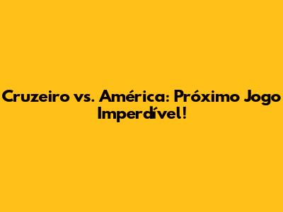 Cruzeiro Vs. América: Próximo Jogo Imperdível!