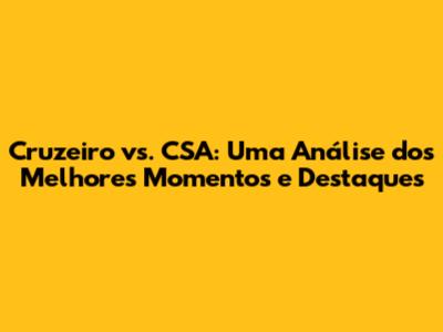 Cruzeiro Vs. CSA: Melhores Momentos E Análise Detalhada