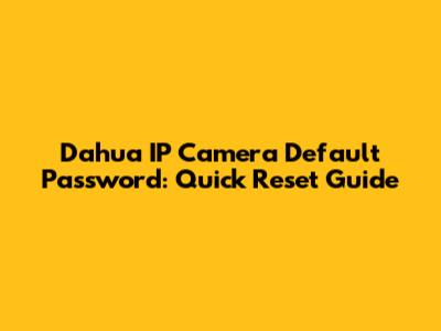 Dahua IP Camera Default Password: Quick Reset Guide