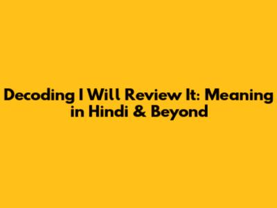 Decoding 'I Will Review It': Meaning In Hindi & Beyond