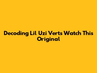 Decoding Lil Uzi Vert's 'Watch This' Original