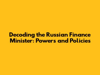 Decoding The Russian Finance Minister: Powers And Policies
