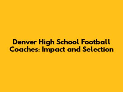 Denver High School Football Coaches: Impact And Selection