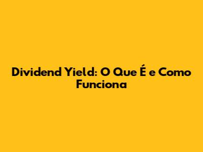 Dividend Yield: O Que É E Como Funciona