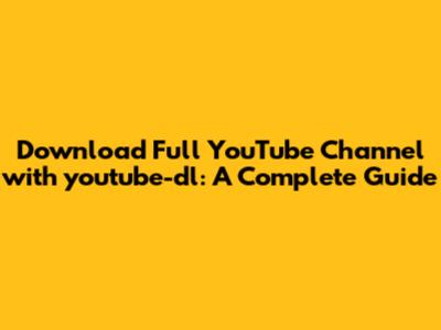 Download Full YouTube Channel With Youtube-dl: A Complete Guide