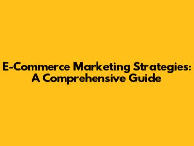 E-Commerce Marketing Strategies: A Comprehensive Guide