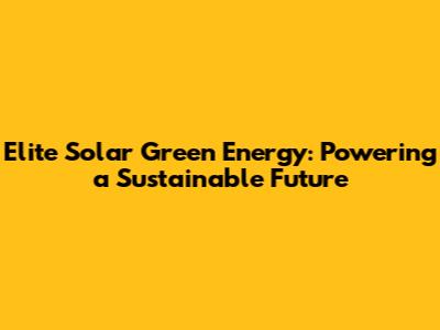 Elite Solar Green Energy: Powering A Sustainable Future