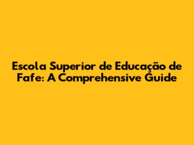 Escola Superior De Educação De Fafe: A Comprehensive Guide