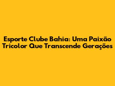 Esporte Clube Bahia: Uma Paixão Tricolor Que Transcende Gerações
