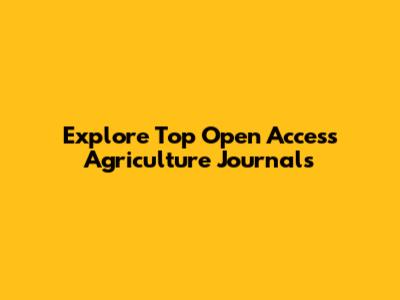 Explore Top Open Access Agriculture Journals
