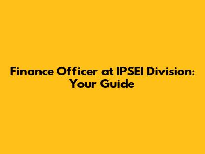 Finance Officer At IPSEI Division: Your Guide