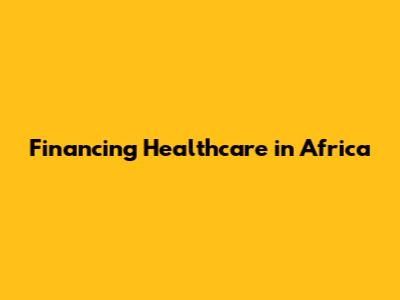 Financing Healthcare In Africa