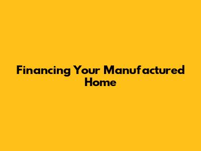 Financing Your Manufactured Home