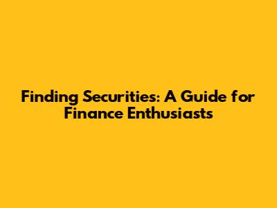 Finding Securities: A Guide For Finance Enthusiasts