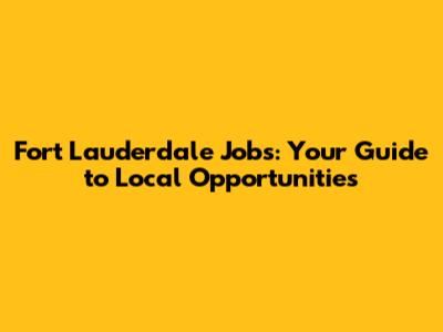Fort Lauderdale Jobs: Your Guide To Local Opportunities