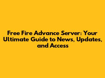Free Fire Advance Server: News, Updates & How To Join