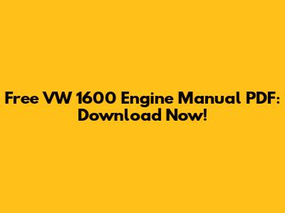 Free VW 1600 Engine Manual PDF: Download Now!