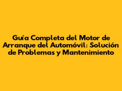 Guía Completa Del Motor De Arranque Del Automóvil: Solución De Problemas Y Mantenimiento