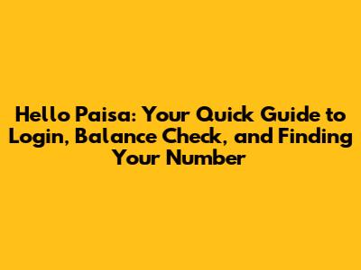 Hello Paisa: Login, Balance Check, & Number Guide