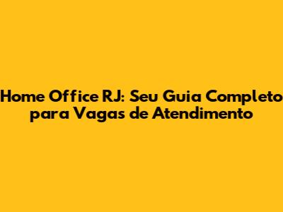 Home Office RJ: Seu Guia Completo Para Vagas De Atendimento