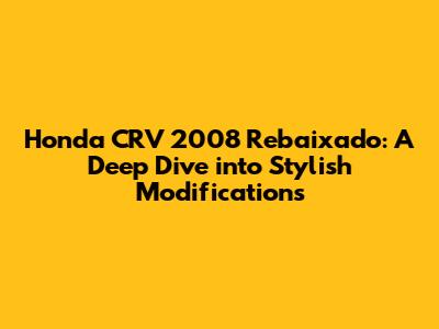Hey guys! Let's dive into the world of modified cars, specifically focusing on the Honda CRV 2008 rebaixado. This isn't just about lowering a car; it's about making a statement, blending style with functionality, and creating a ride that turns heads. For those not familiar, "rebaixado" is Portuguese for "lowered," a popular modification in Brazil and other parts of the world. This trend focuses on reducing a vehicle's ride height, enhancing its aesthetic appeal and potentially improving handling. But what does it really take to achieve that perfect lowered look on a 2008 CRV, and what are the key considerations?